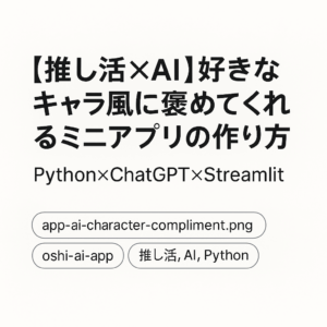 【推し活×AI】好きなキャラ風に褒めてくれるミニアプリを自作する方法 画像を1枚アップすると、“好きなキャラ風の口調”で褒め言葉を自動生成し、吹き出し付き画像として返してくれるミニアプリを作ります。 PythonとCha […]